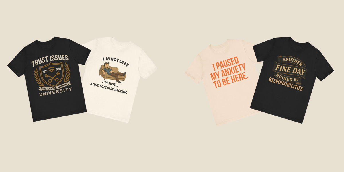 We make apparel for people who don't take life too seriously but notice everything. Some of our stuff calls out the BS, some of it just celebrates the weird. Either way, you won't look basic.